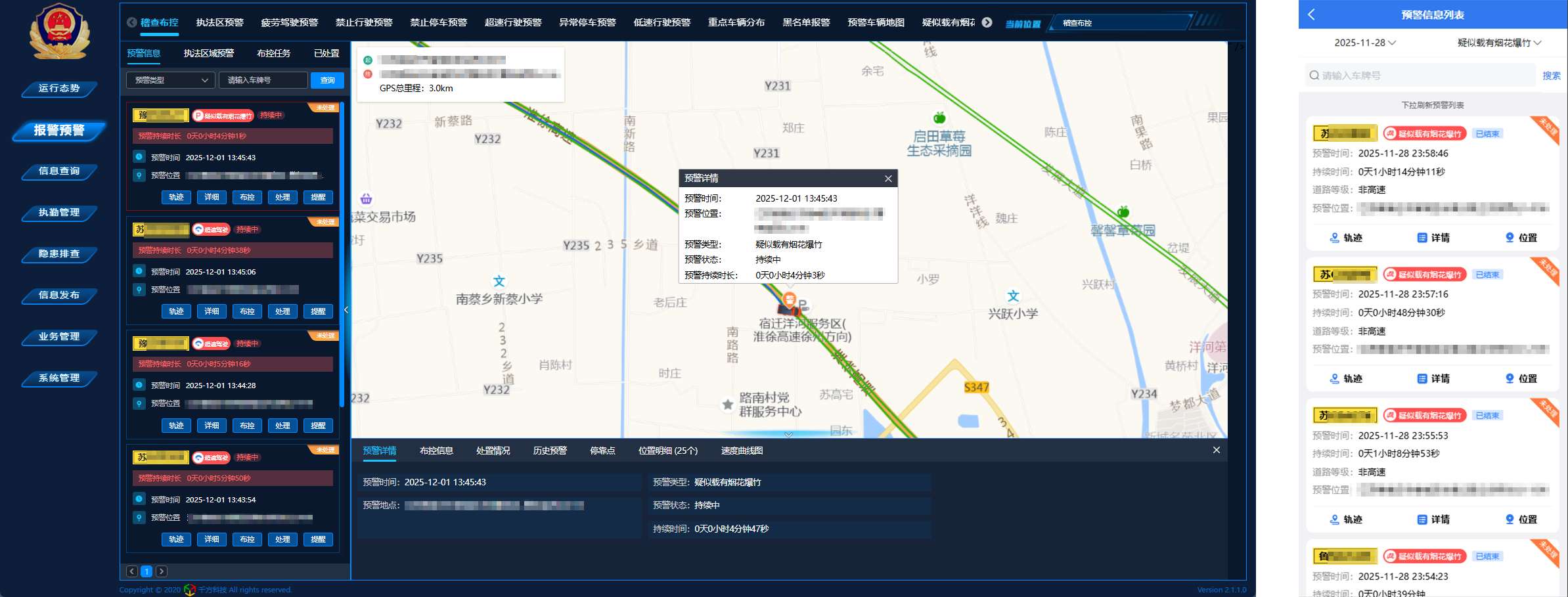PC端和APP端实时发布预警信息,支持动态布控和执法人员制定精准拦截查缉方案。